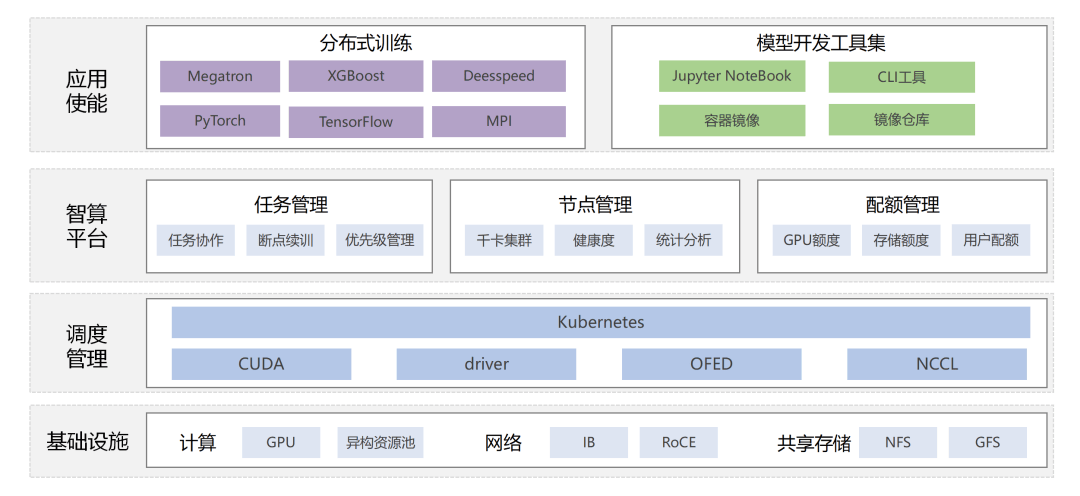大模型智算一体机面向人工智能训练与推理场景,预置环境齐全,平台功能完善,为构建安全可控、提升算力利用率,